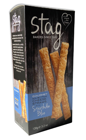Flour (WHEAT Flour, Calcium Carbonate, Iron, Niacin, Thiamin), Butter (20%) (MILK) (Contains Colour: Beta-Carotene), Strathdon Blue Cheese (20%) (MILK), Water, MUSTARD Powder, Salt.