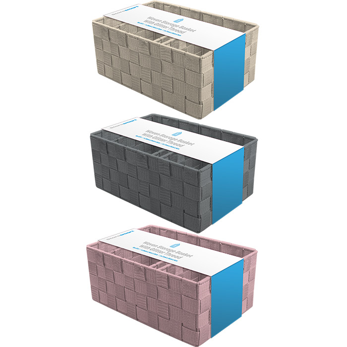 Store Smart Glitter Thread Woven Storage Basket 3 Pack, Various Colours