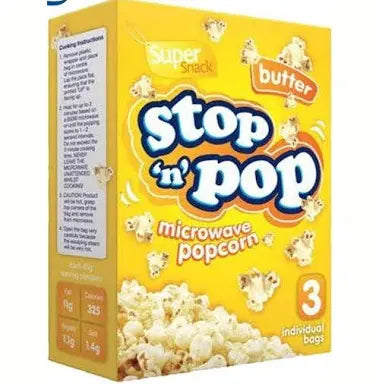 Stop 'N' Pop Butter Microwave Popcorn 85g is a delicious and convenient snack that is perfect for any occasion. Made with real butter and no artificial flavours or colours, this popcorn has a rich buttery flavour that is sure to please everyone.
