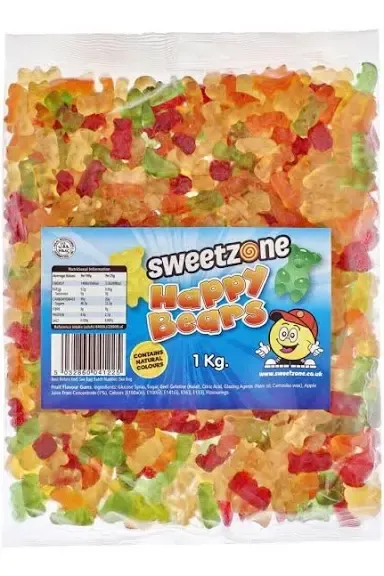 Glucose Syrup, Sugar, Gelling Agent (Beef Gelatine (Halal)), Concentrated Apple Juice (1%), Citric Acid, Artificial Flavors, Glazing Agent (Palm Kernel Oil, Carnauba Wax, Beeswax), FD&C Red 40, FD&C Blue 1, FD&C Yellow 5, FD&c Yellow 6.