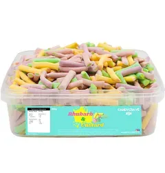 Sugar, Glucose-Fructose Syrup, Vegetable Fat (Palm), Potato Starch, Humectant (E422), Beef Gelatine (Halal), Acids (E334), Flavourings, Colours (E150c, E100, E163, E160, E133, Glazing Agents (Vegetable Oil (Palm))