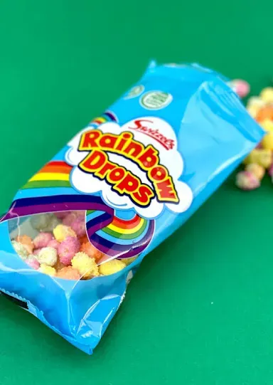 Sugar, Maize, Rice, Glucose Syrup, Flavourings, Colours: Beetroot Red, Copper Chlorophyllin, Lutein, Paprika Extract.