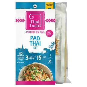 Cook up a delicious and authentic Pad Thai with this easy to use meal kit from Thai Taste. With rice noodles, Pad Thai sauce and peanut mix, this pack contains everything you need to make this classic Thai dish. Pad Thai is one of the world's most popular noodle dishes and now it's even easier to make your own Pad Thai at home. All you need to add is your choice of prawns, diced chicken or chopped vegetables.