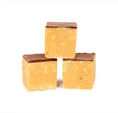 Fudge :- Sugar, glucose, hydrogenated palm kernel oil, sweetened condensed milk fondant, salt, lecithin e322, potassium sorbate, whole flour (gluten), sunflower oil, palm oil, sugar, flour (gluten), raising agents sodium bicarbonate, ammonium bicarbonate, tartaric acid, disodium diphosphate, malic acid), partially inverted sugar syrup, salt, dried whey(milk) and dried malt extract (gluten).