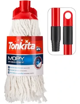 The Tonkita Strizzo Spun Lace Mop & Handle is an absorbent material ideal for mopping household floors. From laminate and wood flooring to tiled and more, the Tonkita Strizzo Spun Lace Mop & Handle can be used with a mop bucket and wringer to effectively clean floors and collect moisture.