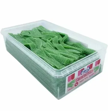 Sugar, Glucose-fructose syrup, Corn starch, Invert sugar syrup, Wheat starch (Contains Gluten), Acids: Malic acid, Citric acid; Wheat flour, Palm fat, Humectant: Glycerol; Flavourings; Acidity regulator: Potassium citrates; Emulsifier: E471; Salt, Colours: E100, E133.