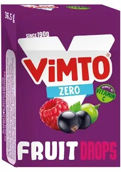 Sweeteners (Isomalt, Steviol Glycosides), Acids (Malic Acid, Citric Acid), Concentrated Mixed Fruit Juice 0.7% (Grape, Blackcurrant, Raspberry), Vimto ® Flavouring (including Natural Extracts of Fruits, Herbs and Spices), Vitamin C, Vegetable and Fruit Concentrates (Carrot, Apple, Blackcurrant).