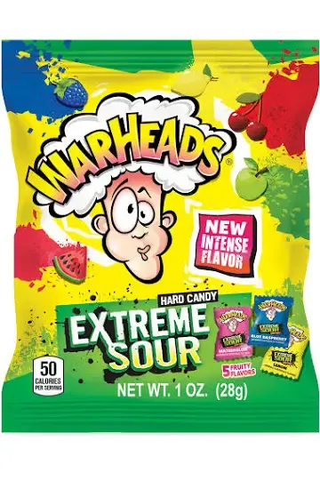 Sugar, Glucose Syrup, Acids (E296, E330), Vegetable Oil (Hydrogenated Palm), Stabiliser (E414), Flavourings, Colours (E129, E102, E133), Glazing Agent (E903), Corn Starch