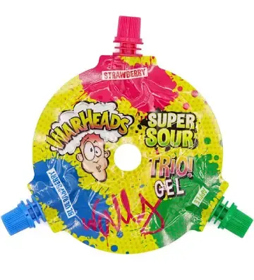 Sugar, Dextrin, Water, Glucose syrup, Acid: Malic acid (E296); Acidity regulator: Sodium Citrate (E331); Thickener: Gum arabic (E414), Pectin (E440); Flavourings, Preservative: Potassium sorbate (E202); Colour: Starwberry:E163; Blue Raspberry: E133; Apple:E141; Cherry:E120.