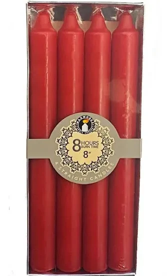 Waxworks 8 Hour Straight Candle 8" 4 Pack, Various Colours