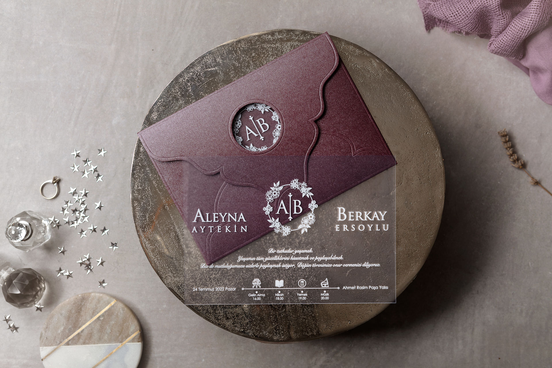 Inner print of the invitation includes the printing of the bride and groom names, invitation text, family names, date, time, and address information on the inside of the invitation.