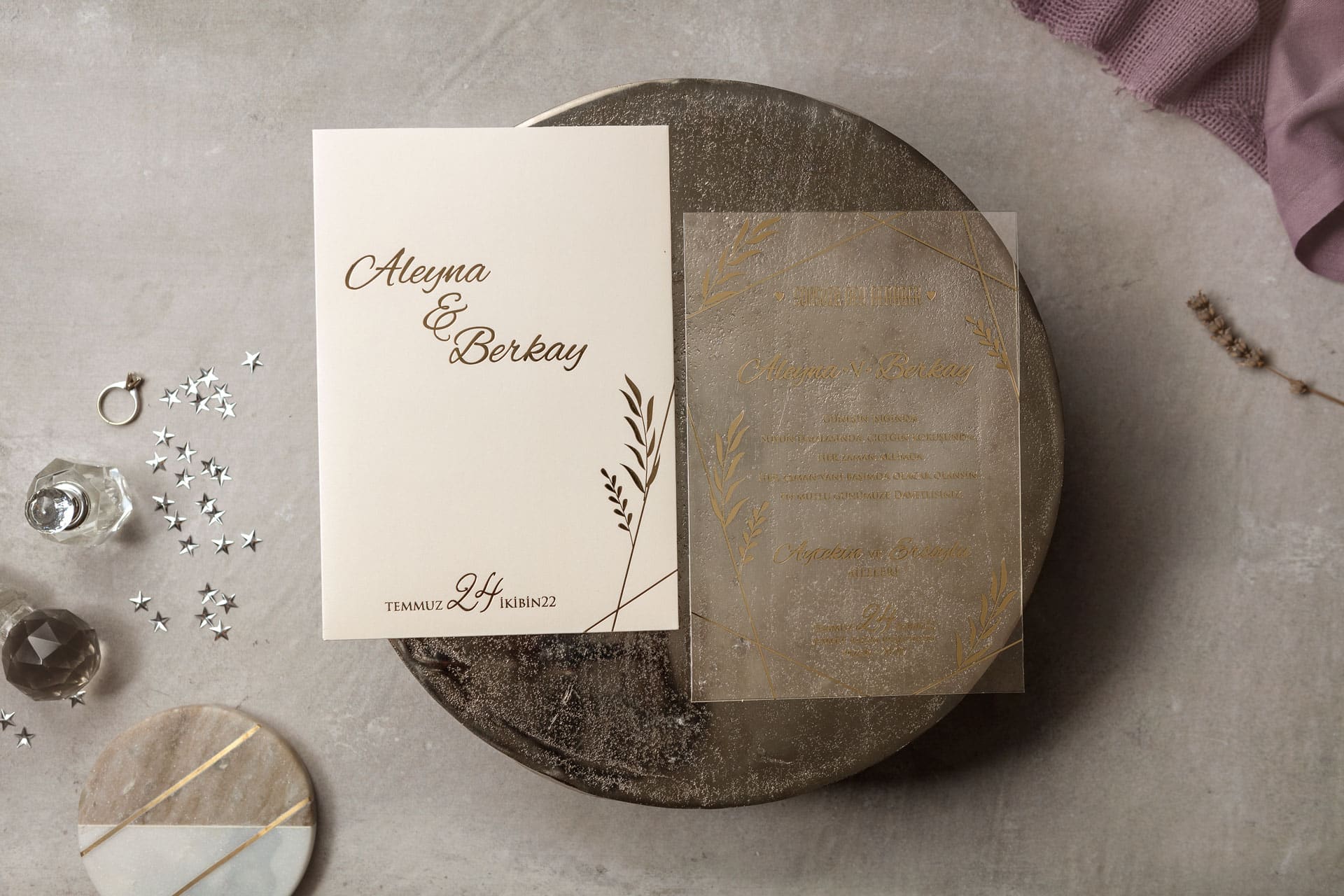 Inner print of the invitation includes the printing of the bride and groom names, invitation text, family names, date, time, and address information on the inside of the invitation.