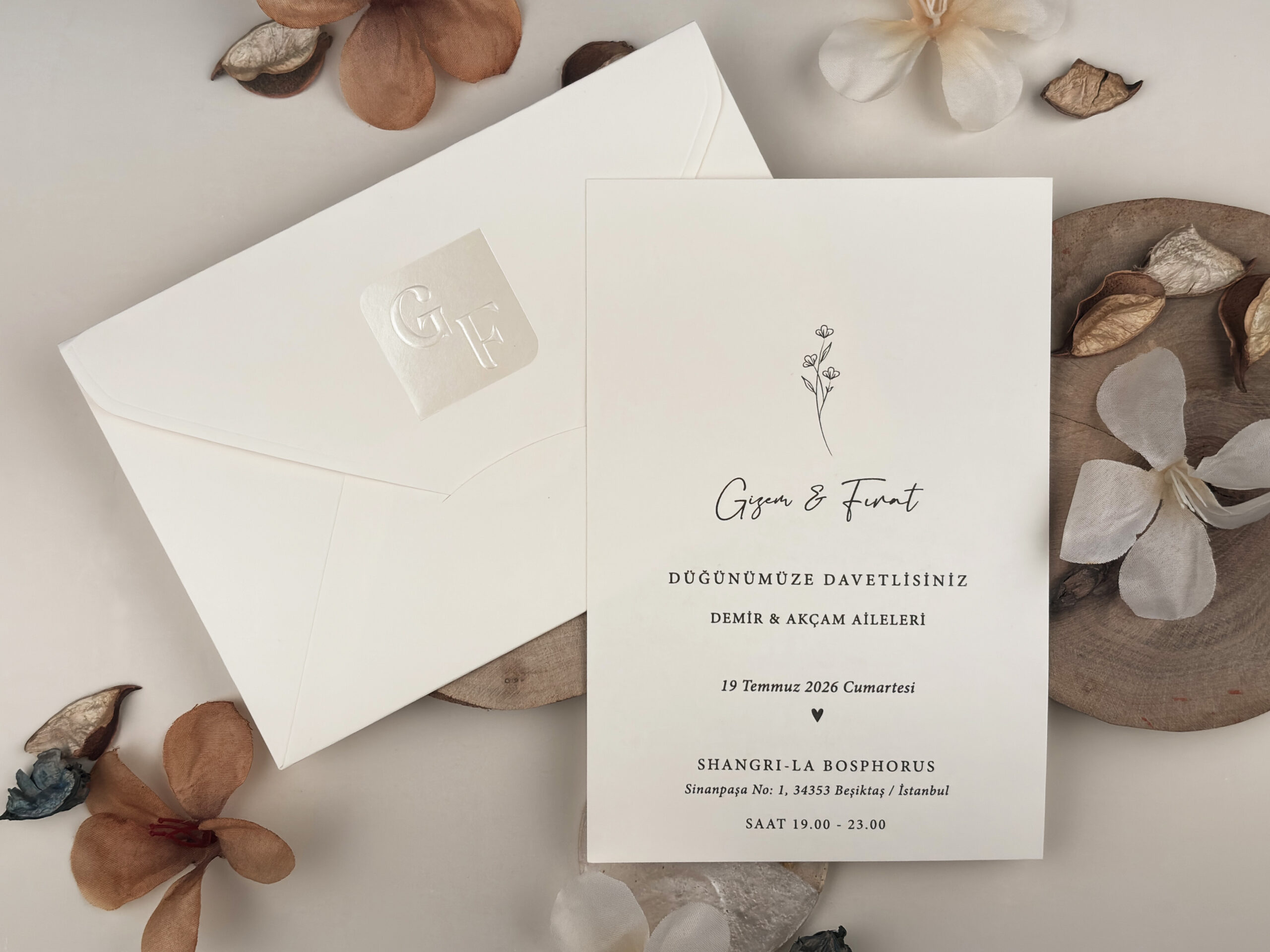 Envelope name printing is the process of printing the bride and groom’s names, initials, or date information on the top of the invitation envelope.