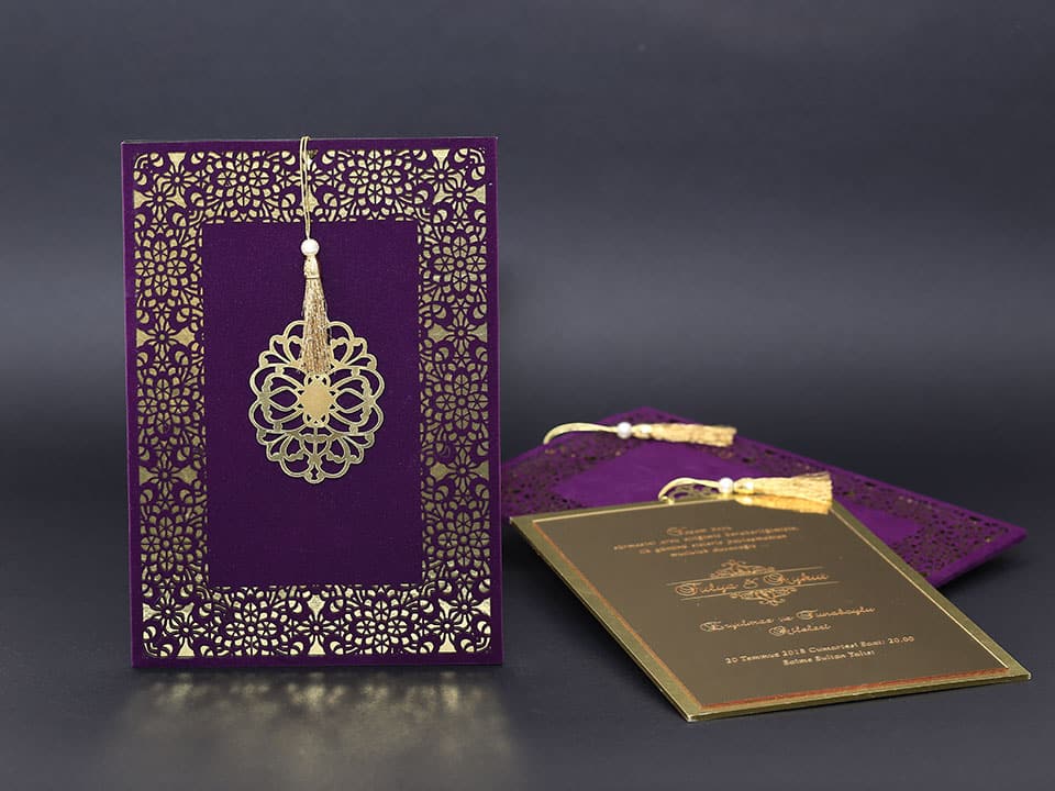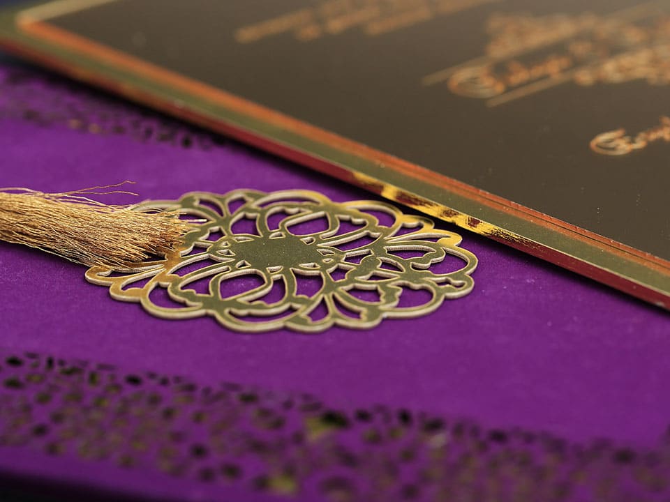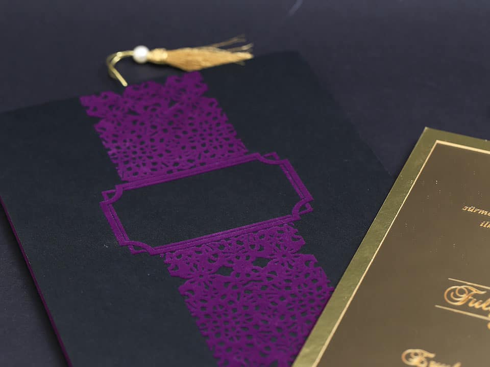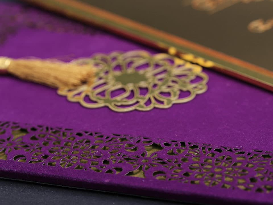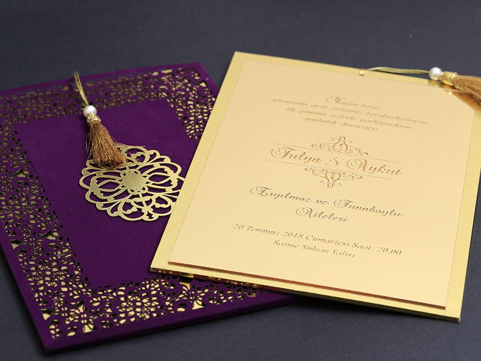 Inner print of the invitation includes the printing of the bride and groom names, invitation text, family names, date, time, and address information on the inside of the invitation.
