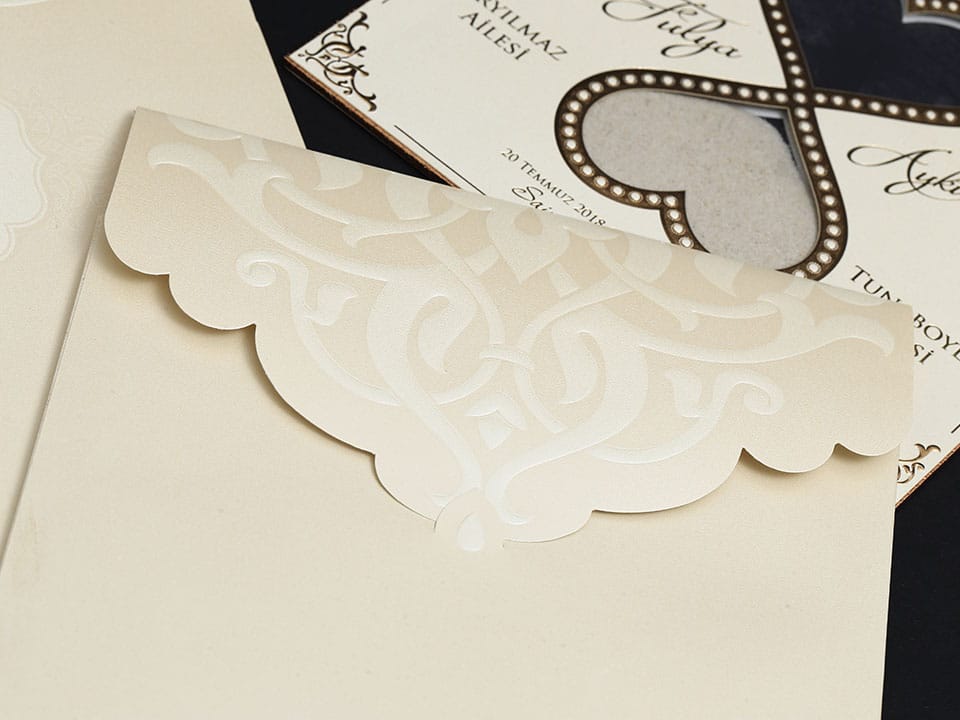 Envelope name printing is the process of printing the bride and groom’s names, initials, or date information on the top of the invitation envelope.