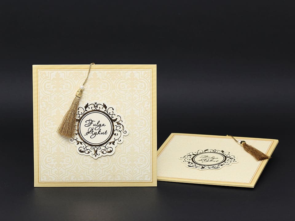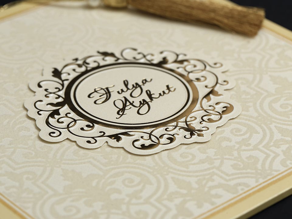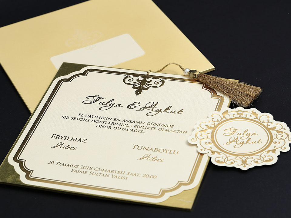 Inner print of the invitation includes the printing of the bride and groom names, invitation text, family names, date, time, and address information on the inside of the invitation.