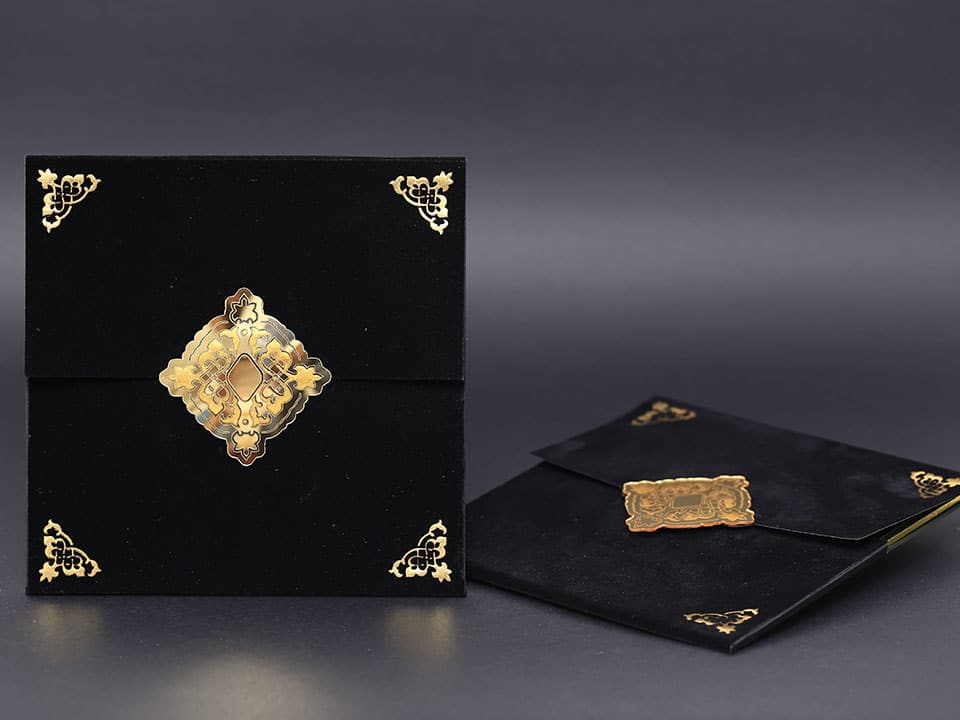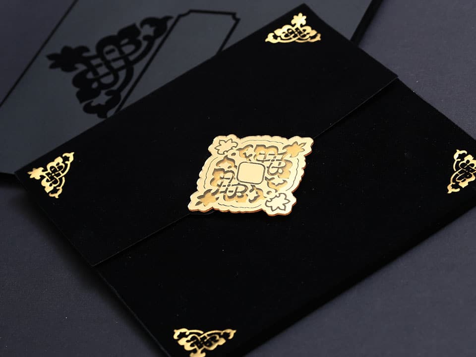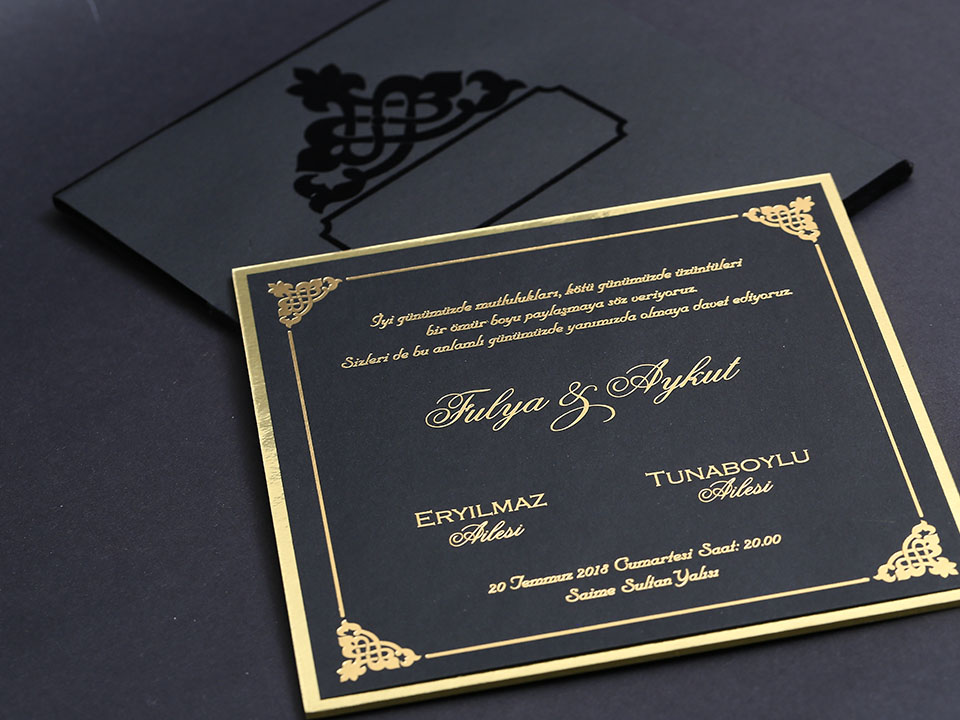 - Inner print of the invitation includes the printing of the bride and groom names, invitation text, family names, date, time, and address information on the inside of the invitation.