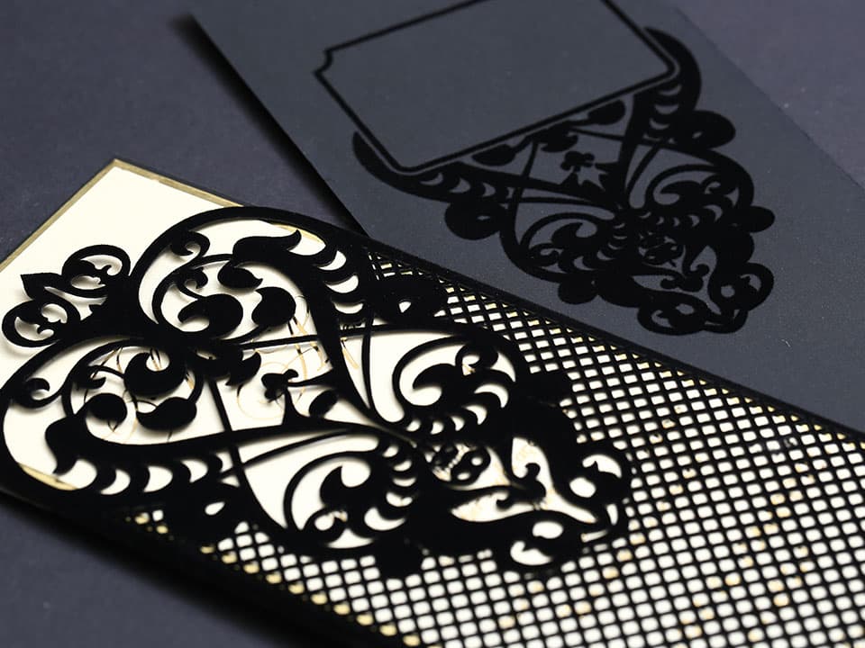 Envelope name printing is the process of printing the bride and groom’s names, initials, or date information on the top of the invitation envelope.
