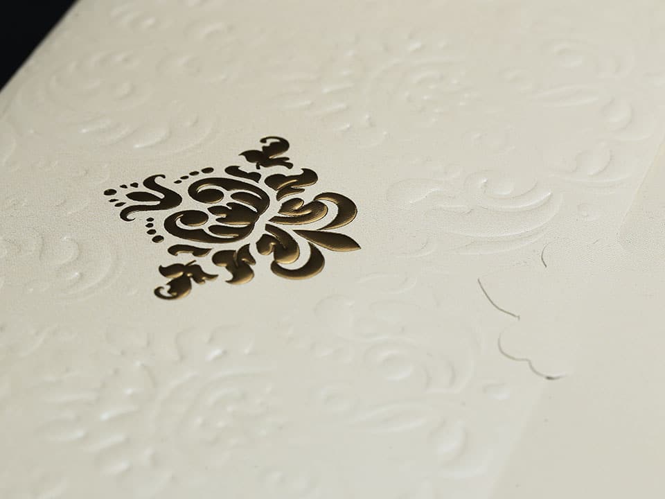 Envelope name printing is the process of printing the bride and groom’s names, initials, or date information on the top of the invitation envelope.
