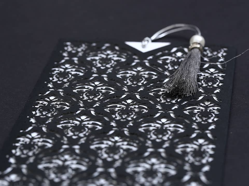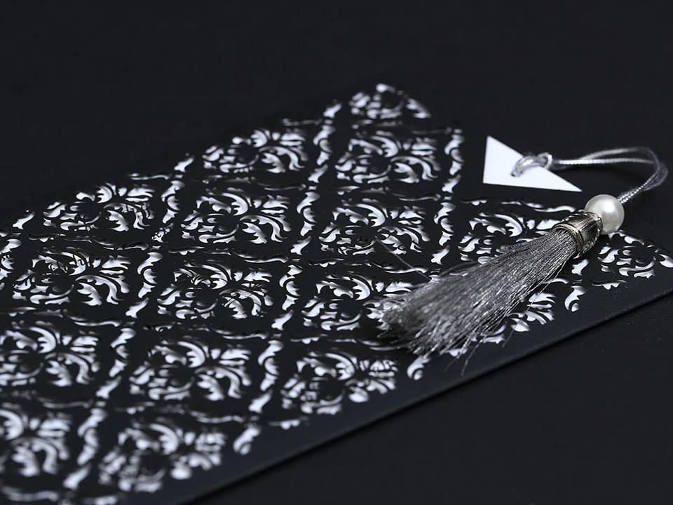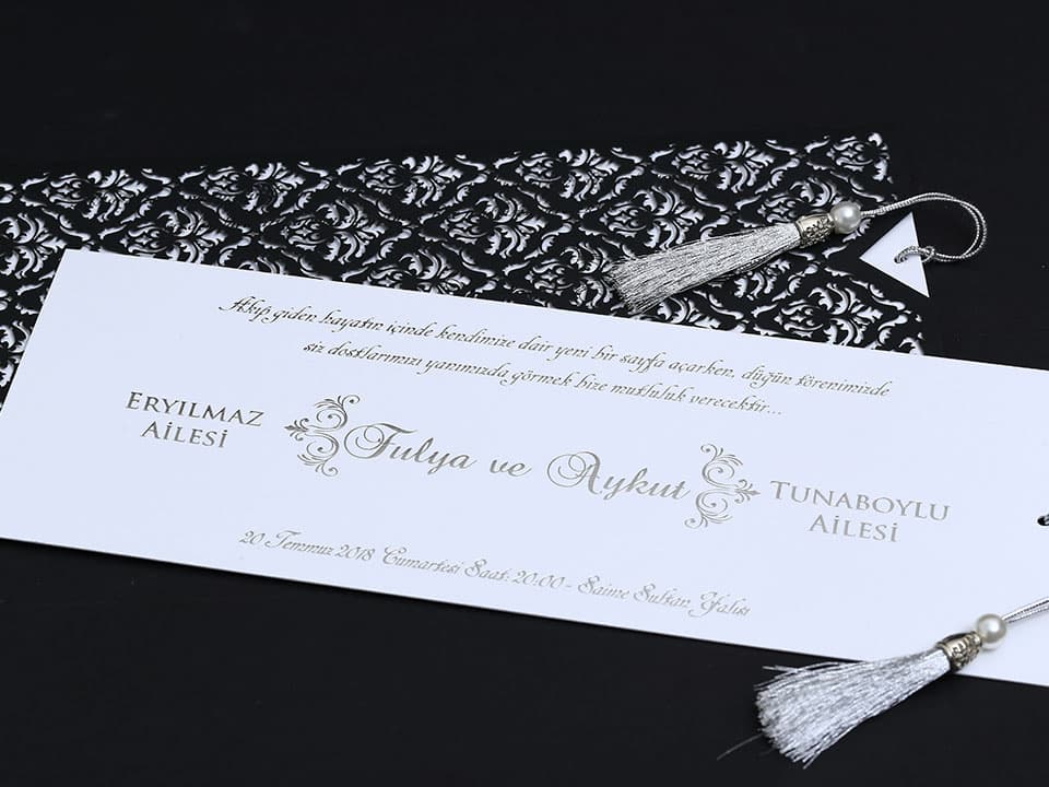 Inner print of the invitation includes the printing of the bride and groom names, invitation text, family names, date, time, and address information on the inside of the invitation.