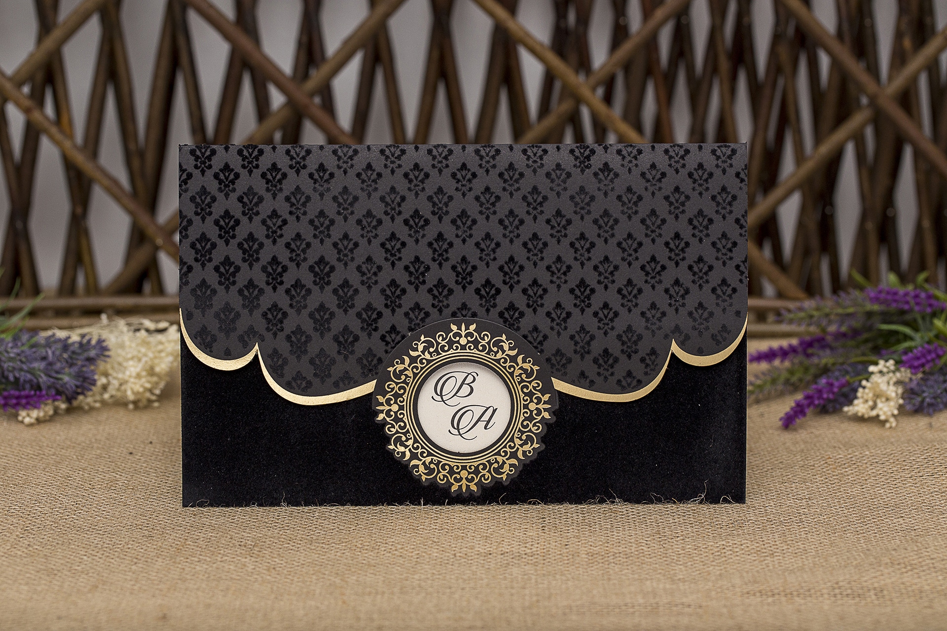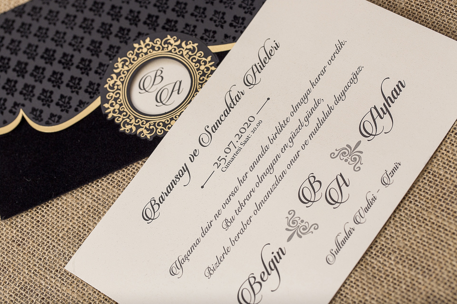 Inner print of the invitation includes the printing of the bride and groom names, invitation text, family names, date, time, and address information on the inside of the invitation.