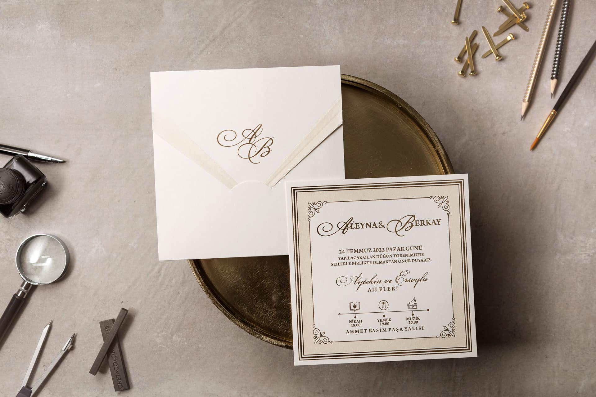 Envelope name printing is the process of printing the bride and groom’s names, initials, or date information on the top of the invitation envelope.