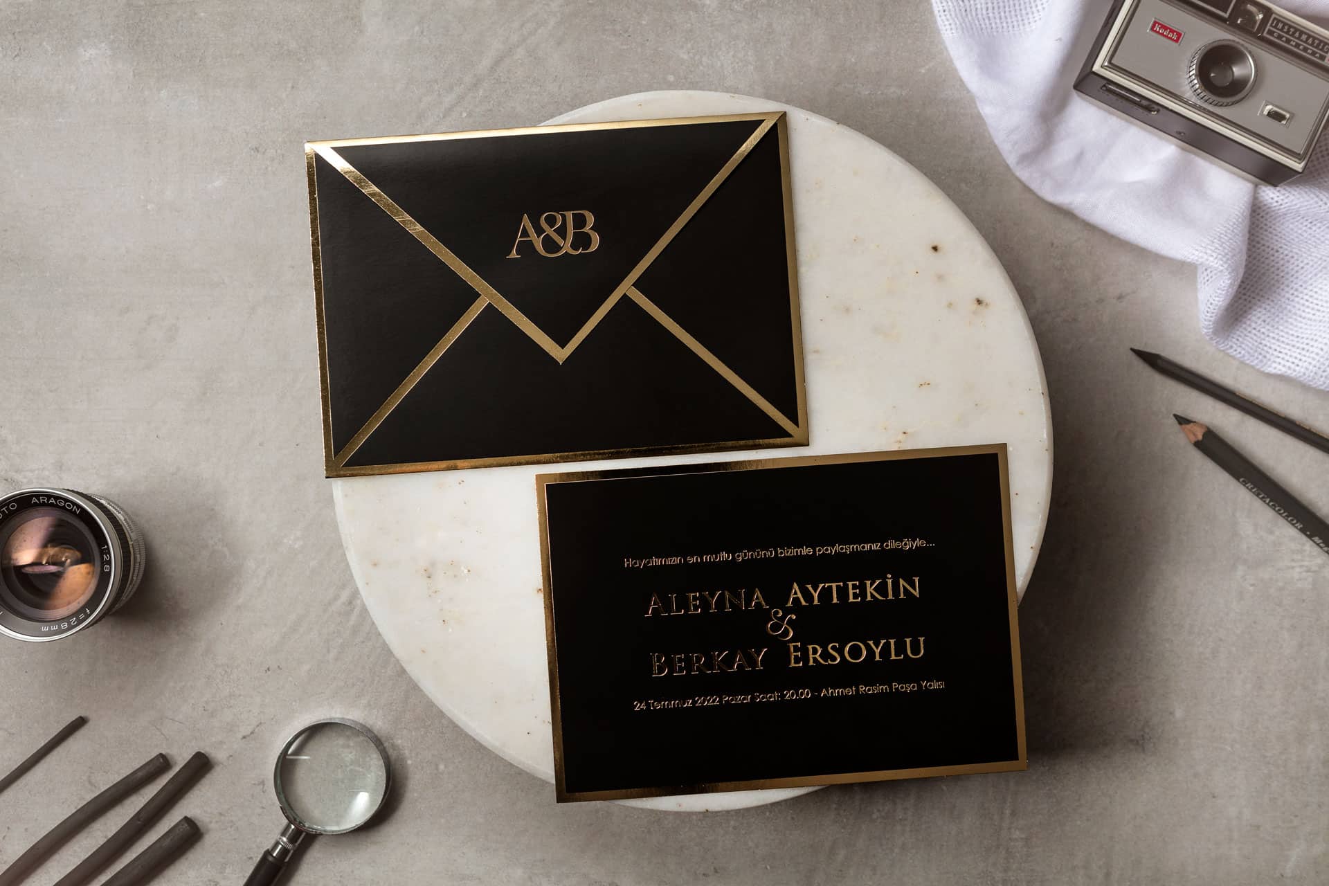 Envelope name printing is the process of printing the bride and groom’s names, initials, or date information on the top of the invitation envelope.