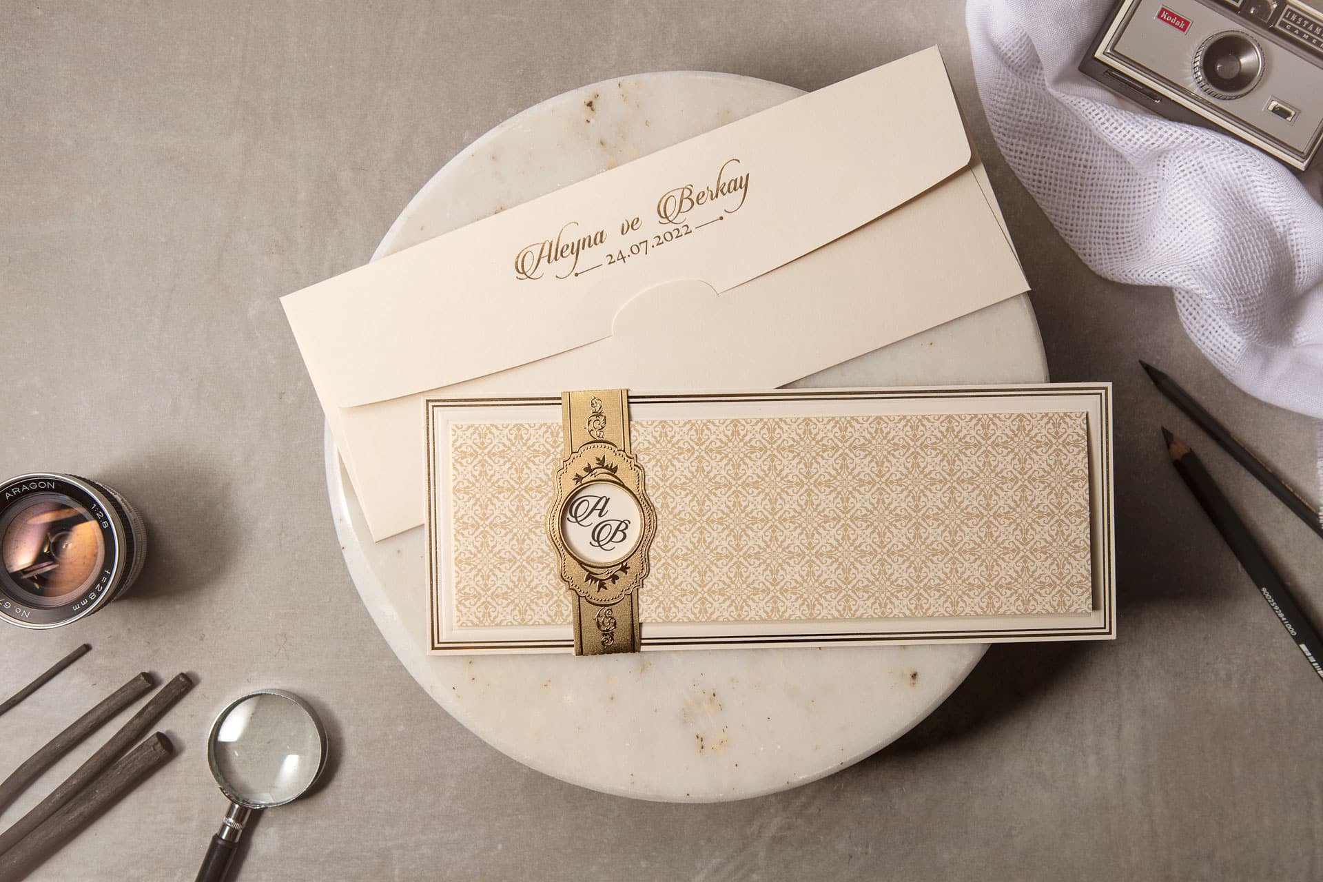 Envelope name printing is the process of printing the bride and groom’s names, initials, or date information on the top of the invitation envelope.