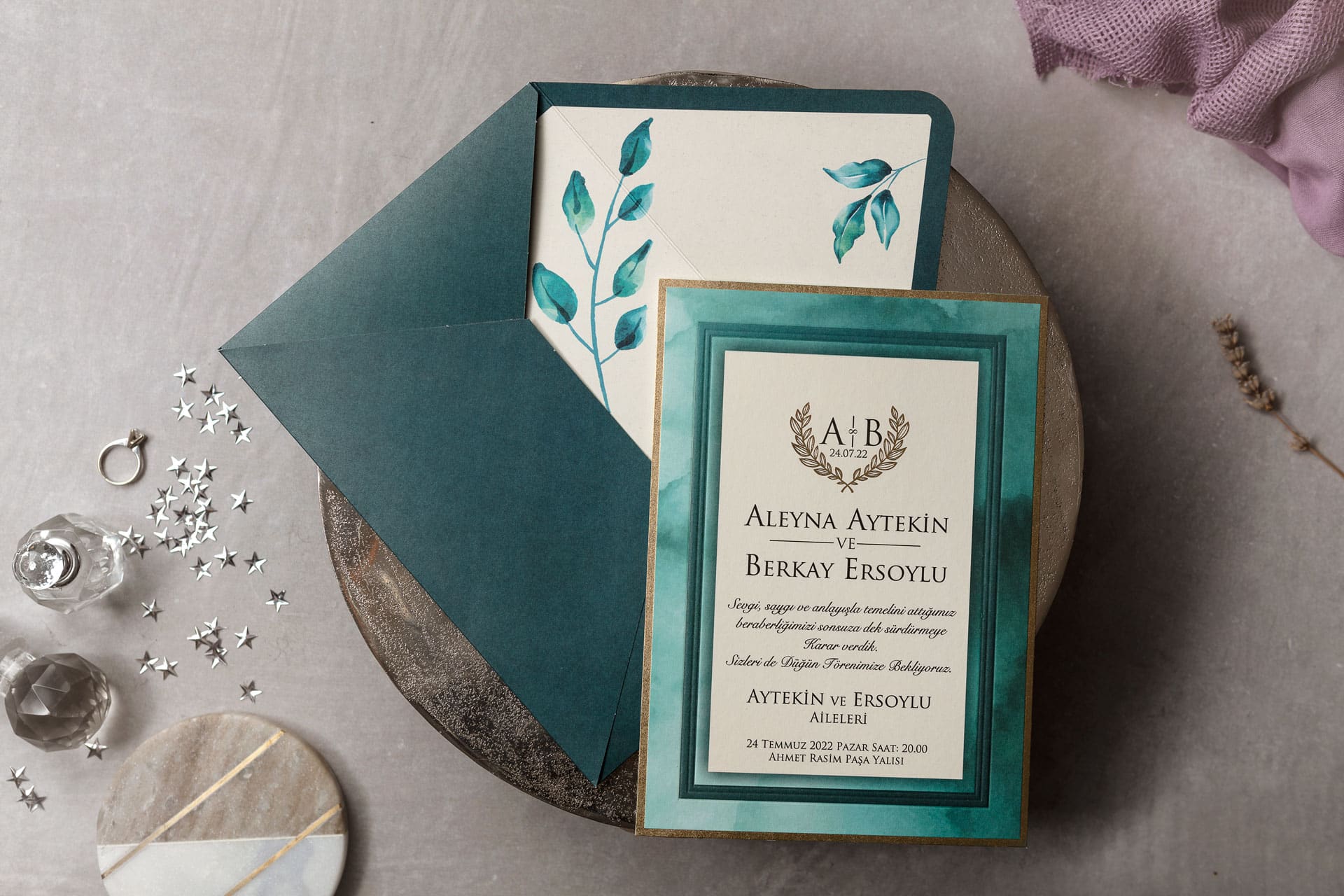 Inner print of the invitation includes the printing of the bride and groom names, invitation text, family names, date, time, and address information on the inside of the invitation.