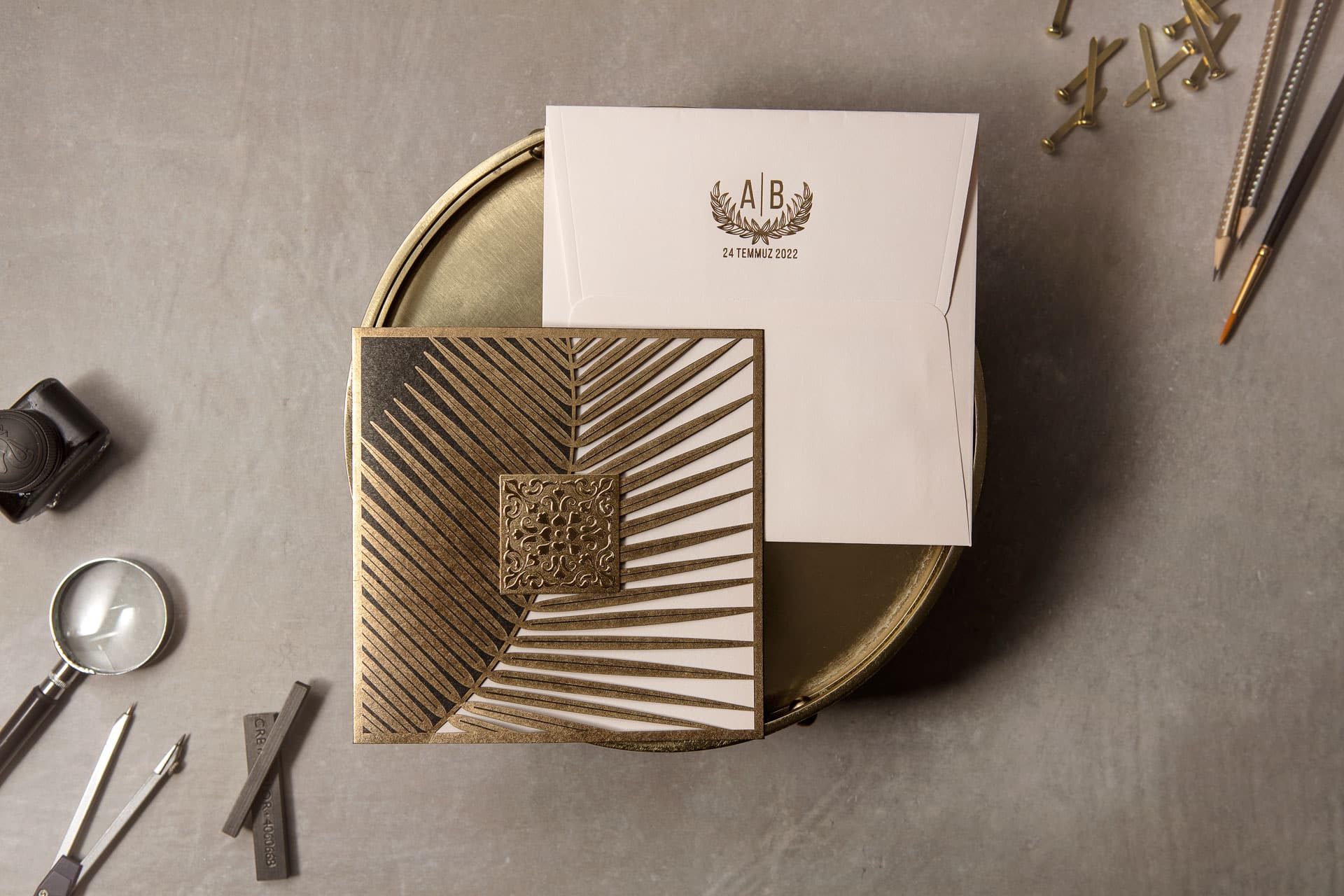 Envelope name printing is the process of printing the bride and groom’s names, initials, or date information on the top of the invitation envelope.