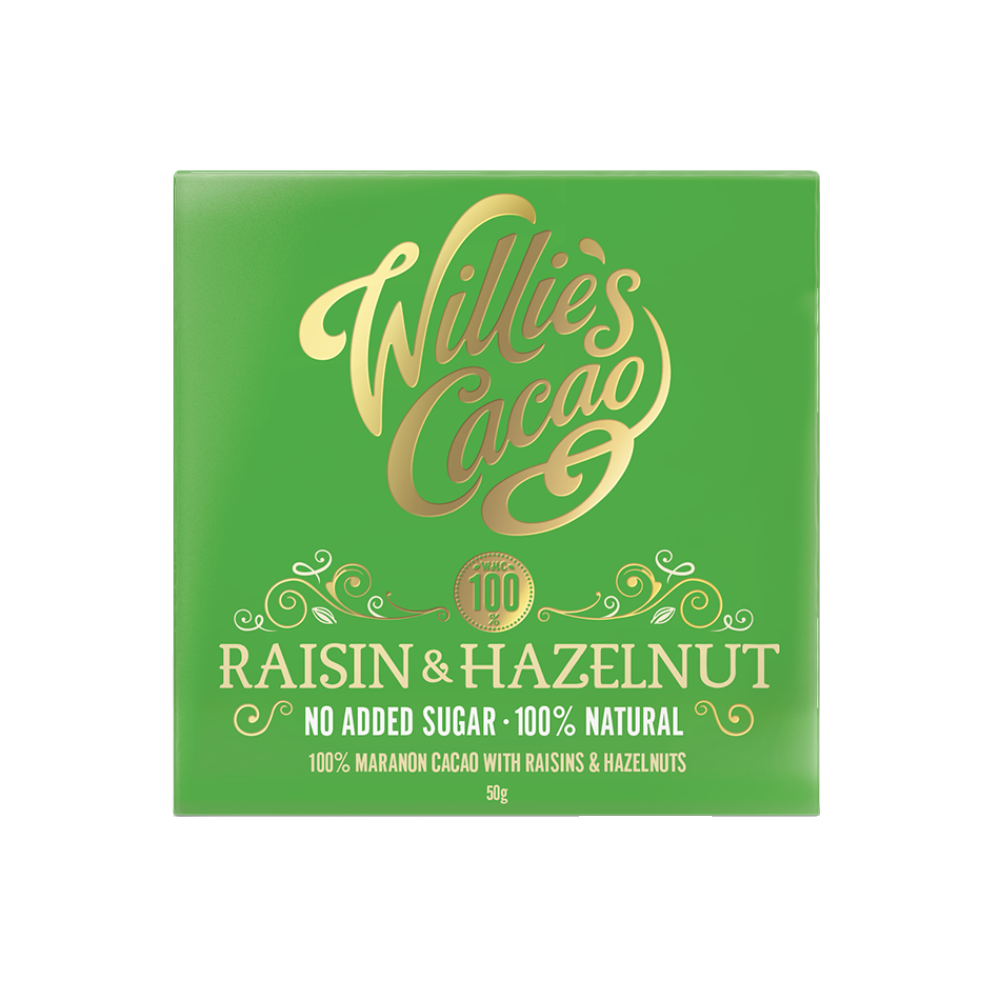 Willie's Cacao No Added Sugar Raisin & Hazlenut Chocolate (12 x 50g)