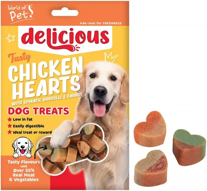 World Of Pets Chicken & Vegetable Hearts Dog Treats 80g x 12