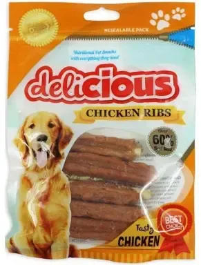 The World Of Pets Delicious Chicken Ribs Munchy Dog Treats are ideal for treating dogs during training exercises or walking, and are used to reward good behaviour.