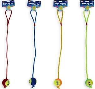The World of Pets Rope Tug Toy is available in four assorted colours; Red, Blue, Yellow or Green.