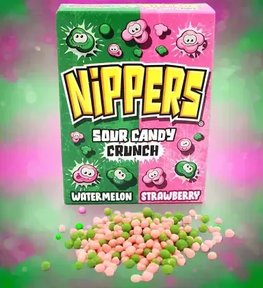 Dextrose, Sugar, Acid: Malic Acid; Flavourings, Glucose Syrup, Gum Arabic, Modified Starch, Colours: E133, E160a; Radish Juice Concentrate Powder, Glazing Agent: Carnauba Wax.