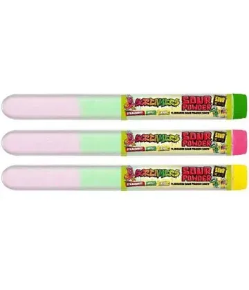 Sugar, Dextrose, Acids: Citric Acid, Malic Acid; Flavourings, Sodium Bicarbonate, Anticaking Agent: Magnesium Stearate; Modified Starch, Colours: E100, E133, E163.